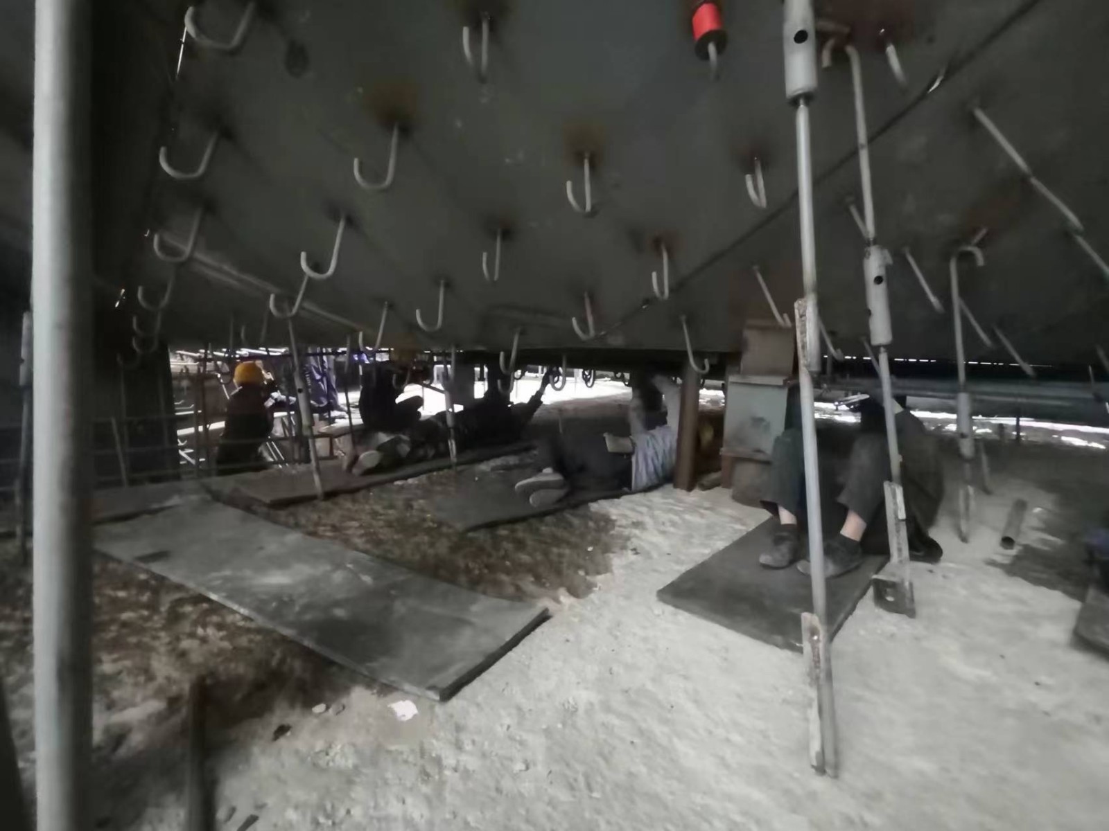 4號機組管形座二期混凝土施工的作業(yè)面最狹窄之處寬度僅0.8米,加之管形座上游里襯背面布滿錨鉤,實際可供作業(yè)的空間不足0.6米。在這樣艱難的條件下,作業(yè)工人憑借精湛的技藝與頑強的毅力,在狹小空間內(nèi)靈活輾轉(zhuǎn)騰挪,順利完成了近100噸鋼筋的制作安裝和3000立方米混凝土的澆筑任務(wù),創(chuàng)造了類似機組管形座二期混凝澆筑進度新標(biāo)桿。
