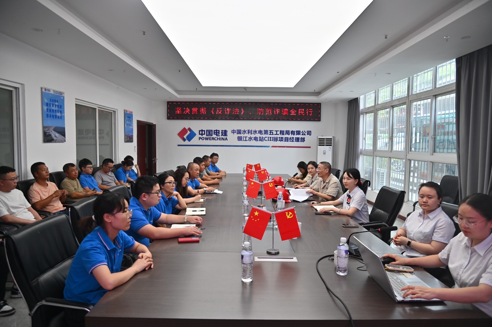 按照省金融辦及省國(guó)資委相關(guān)要求,川投能源所屬攀水電公司結(jié)合自身實(shí)際,于6月19日聯(lián)合中國(guó)銀行金曦苑支行到銀江水電站參建單位工地開(kāi)展防范非法金融活動(dòng)相關(guān)宣講。中國(guó)銀行金曦苑支行行長(zhǎng)羅欣及相關(guān)人員,攀水電公司資金財(cái)務(wù)部、綜合管理部及相關(guān)人員,水電五局銀江項(xiàng)目部員工及建設(shè)一線(xiàn)工人共計(jì)30余人參加活動(dòng)。