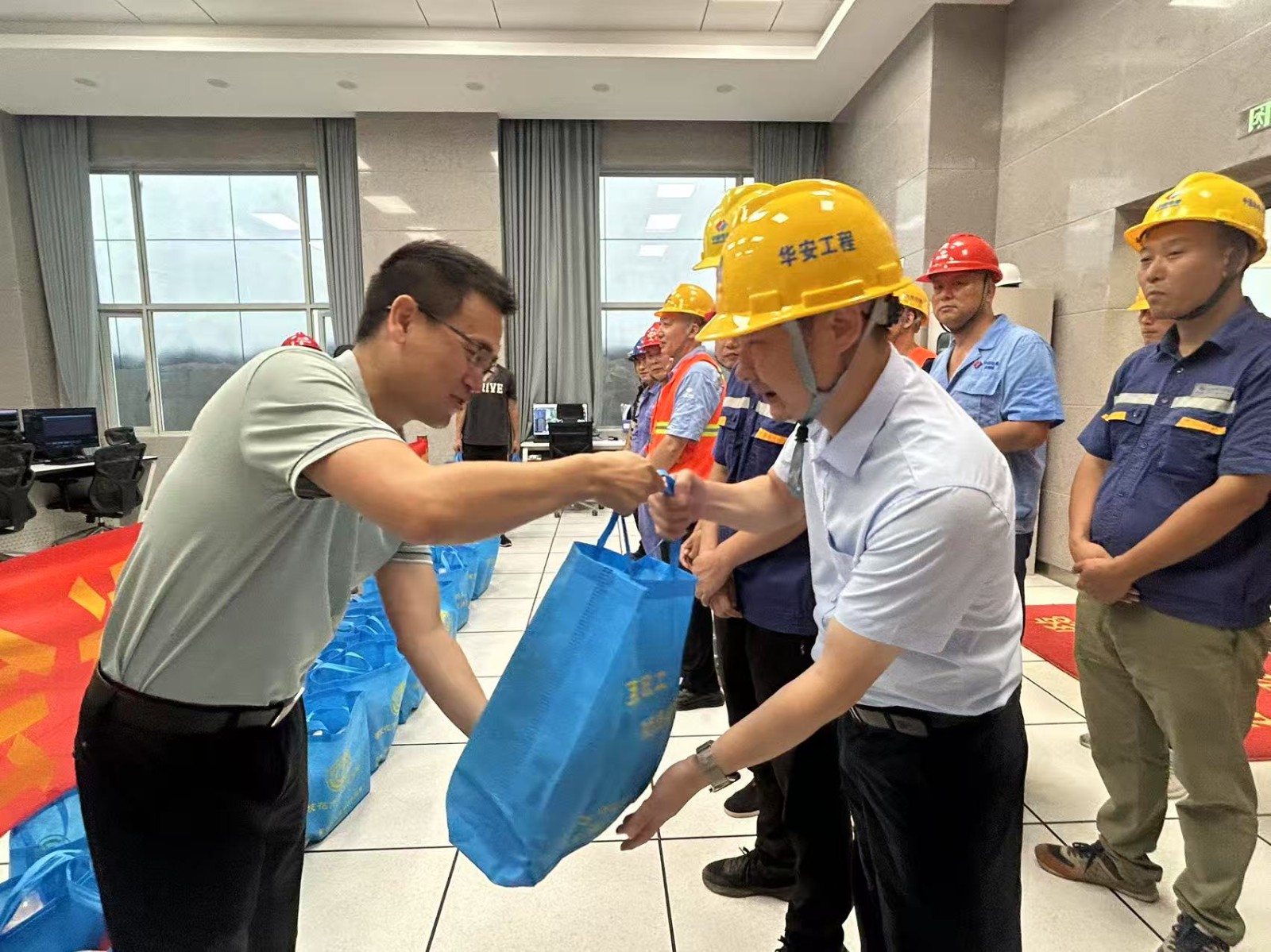 張平一行在現(xiàn)場了解了銀江水電站工程建設(shè)和安全生產(chǎn)情況,向一線人員送上了洗發(fā)露、沐浴露、洗衣液等清涼物資300余份?!肮?huì)送來的不僅是清涼,更是暖心!”大家紛紛表示,雖然天氣炎熱,但感受到了“娘家人”的貼心關(guān)懷,一定會(huì)克服高溫困難,時(shí)刻牢記“安全第一、生命至上”理念,以更加飽滿的熱情投入工作中。