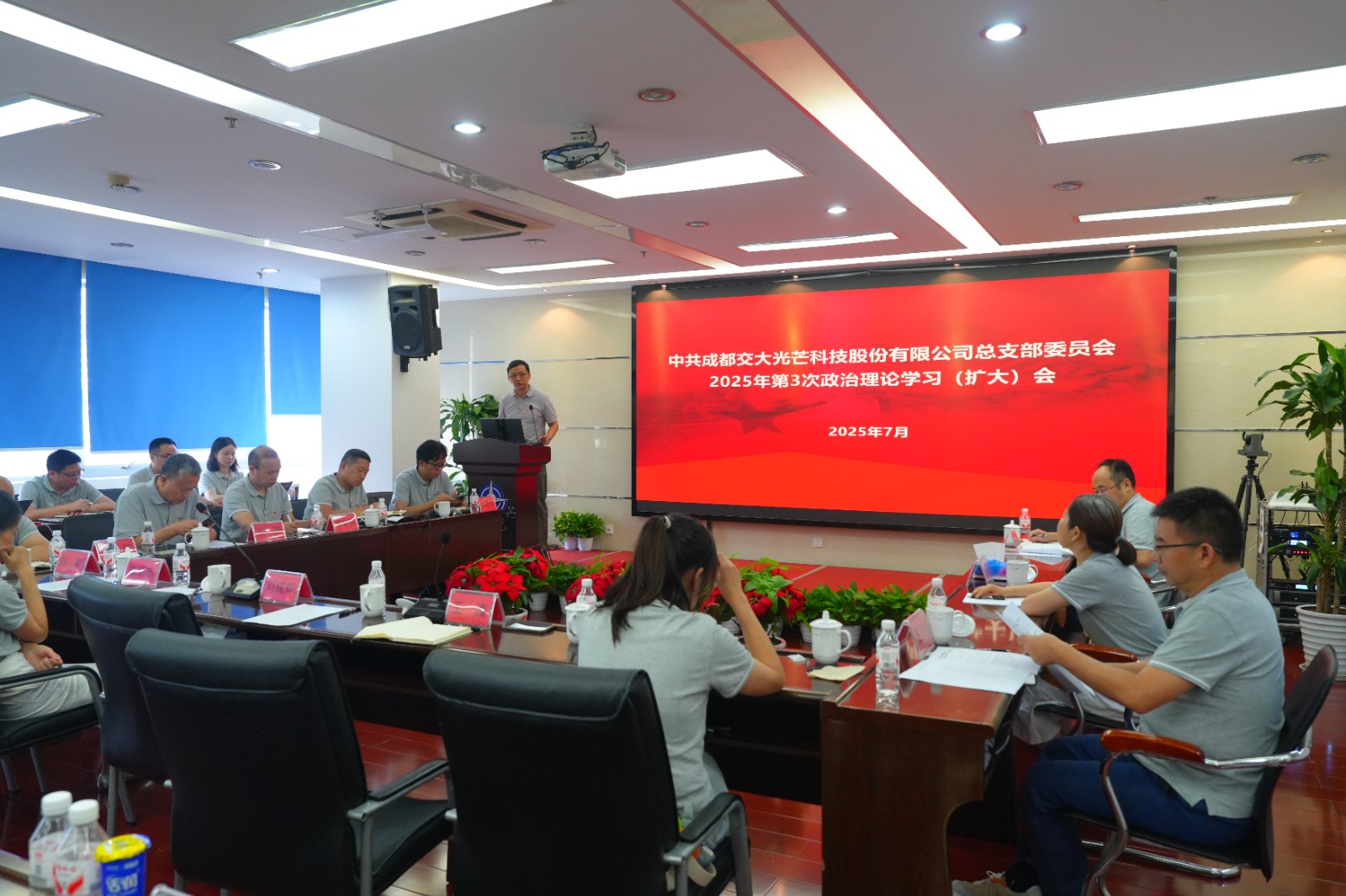 7月18日,交大光芒黨總支召開2025年第3次政治理論學習(擴大)會。會議由黨總支書記、常務副總經(jīng)理王濤主持,黨總支委員、經(jīng)營班子成員和中層及以上管理人員參加學習。