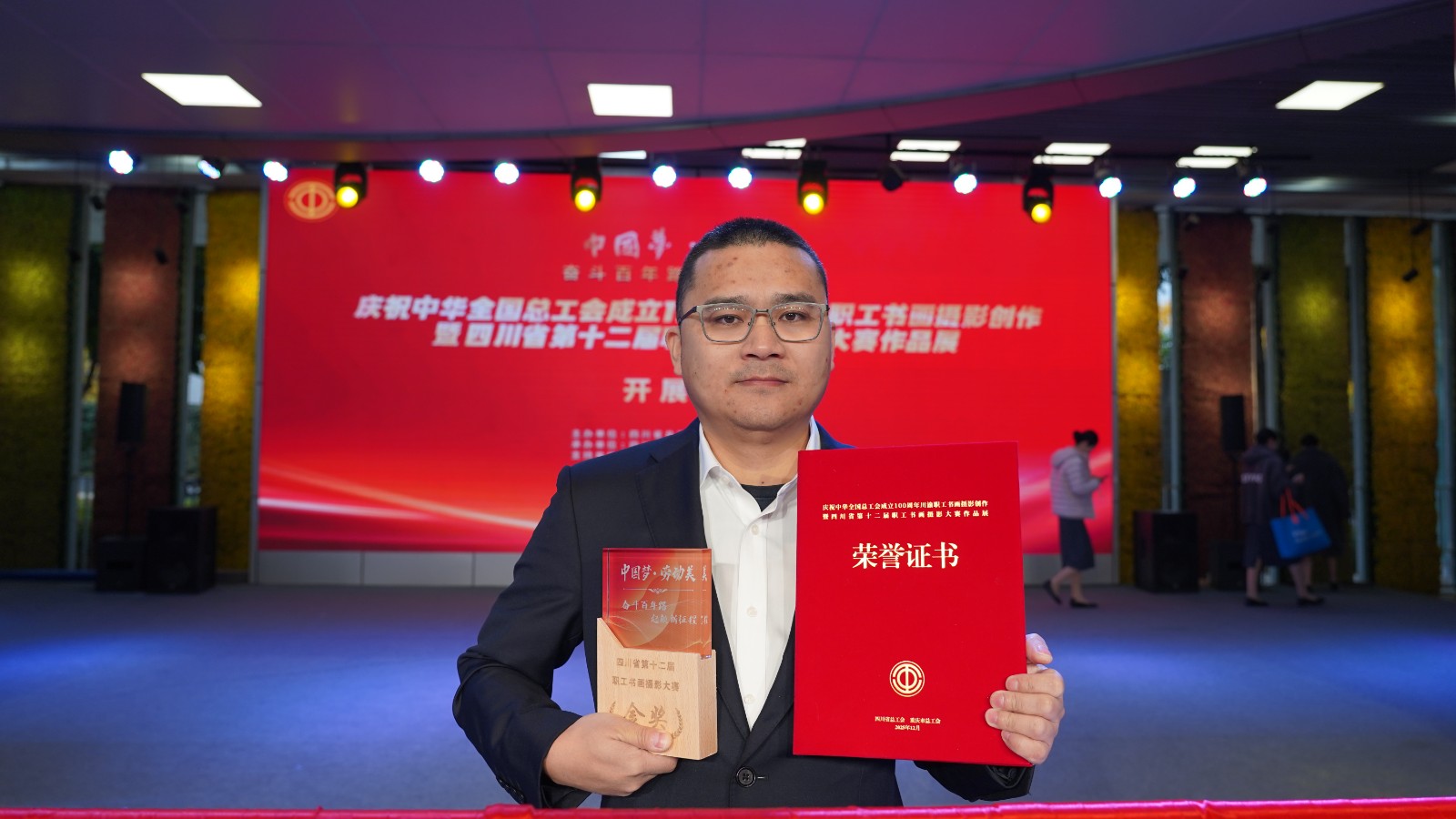 12月3日,由四川省總工會(huì)主辦的“慶祝中華全國總工會(huì)成立100周年書畫攝影采風(fēng)創(chuàng)作展暨四川省第十二屆職工書畫攝影大賽”頒獎(jiǎng)及展覽儀式在成都市勞動(dòng)人民文化宮廣場(chǎng)舉行。川投能源所屬攀水電公司員工田永志創(chuàng)作的攝影作品《銀江水電站建設(shè)(組圖)》,從1569件參賽作品中脫穎而出,憑借其扎實(shí)的攝影功底與鮮明的主題表達(dá),榮獲大賽金獎(jiǎng),位列獲獎(jiǎng)?wù)甙袷住L镉乐静粌H是本屆大賽攝影組三名金獎(jiǎng)得主之一,也是省屬企業(yè)中唯一獲得攝影組金獎(jiǎng)的選手。