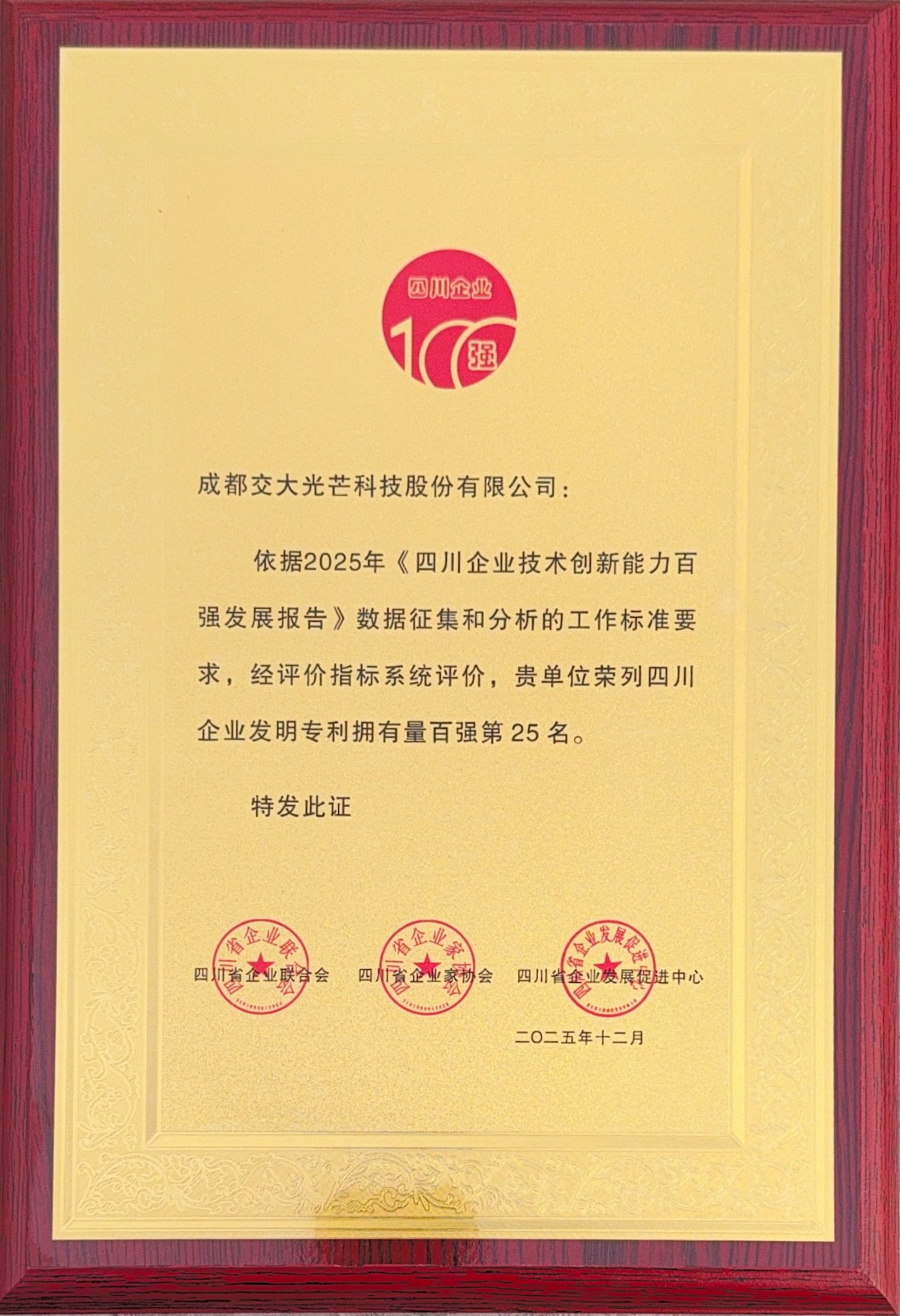 近日,2025年四川企業(yè)技術(shù)創(chuàng)新發(fā)展大會在成都召開,川投能源所屬交大光芒公司獲評四川企業(yè)技術(shù)創(chuàng)新能力百強(qiáng)企業(yè)(第19位)和四川企業(yè)發(fā)明專利擁有量百強(qiáng)企業(yè)(第25位),這是交大光芒連續(xù)四年榮獲“雙百強(qiáng)”企業(yè),公司首席專家、副總經(jīng)理陳奇志獲評“2025年四川企業(yè)技術(shù)創(chuàng)新突出貢獻(xiàn)人物”。