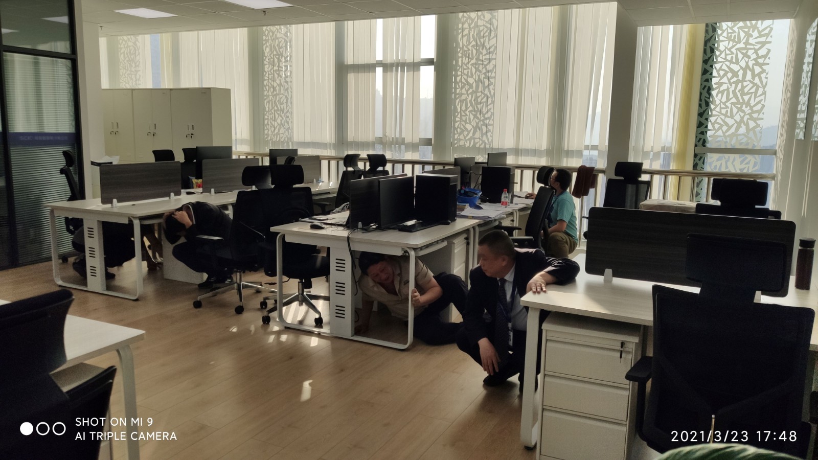 同日下午,攀水電公司在鋼城經(jīng)貿(mào)大廈A座辦公樓(26樓)會議室進(jìn)行了地震災(zāi)害疏散演練培訓(xùn)。演練開始前,組織觀看了地震災(zāi)害應(yīng)急知識短視頻,并介紹講解了辦公樓緊急疏散通道和疏散路線,強(qiáng)調(diào)了避震原則以及緊急避震、緊急疏散、緊急搶救相關(guān)知識與注意事項(xiàng)。17點(diǎn)45分05秒,模擬演練發(fā)生4.8級地震,震源深度為12公里,震感強(qiáng)烈,各參演人員按照緊急避震原則,采取低頭、蜷曲身體、爬入辦公桌下等有利于避震的方式防護(hù)身體重要部位。主震結(jié)束后,公司第一時(shí)間啟動應(yīng)急響應(yīng),立即組織各參演人員按照既定的疏散路線安全撤離到達(dá)指定區(qū)域。