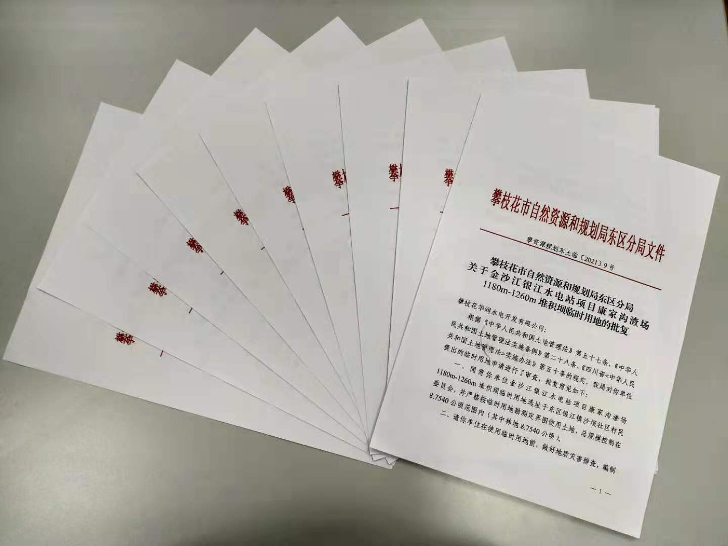 近日,川投能源攀水電公司銀江水電站項(xiàng)目臨時(shí)用地手續(xù),獲得攀枝花市自然資源和規(guī)劃局東區(qū)分局批復(fù),同意按照有關(guān)規(guī)定提供97.3881公頃土地作為銀江水電站臨時(shí)用地。至此,銀江水電站使用林地及建設(shè)用地已全部獲得批準(zhǔn)。