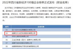 【交大光芒】獲評(píng)四川省新經(jīng)濟(jì)100強(qiáng)企業(yè)
