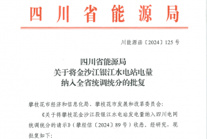 【攀水電公司】銀江水電站成功取得省能源局統(tǒng)調(diào)統(tǒng)分批復(fù)