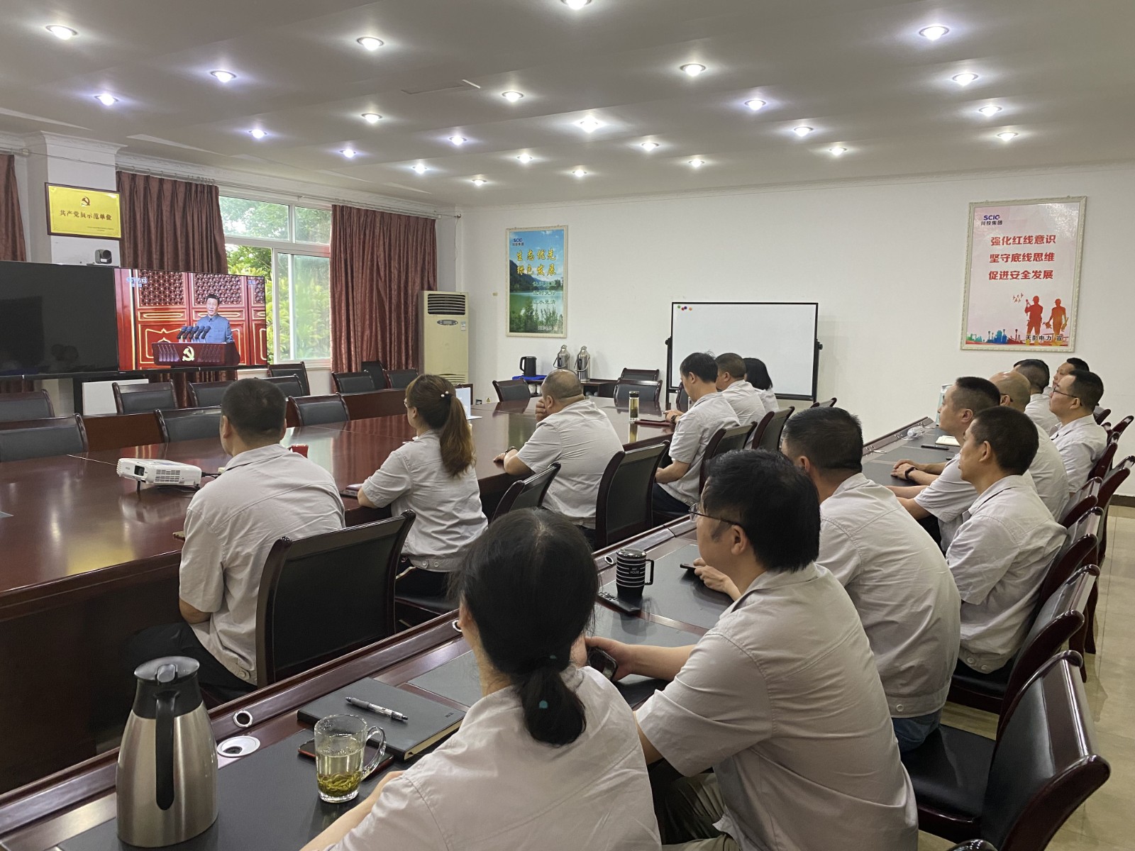 2021年7月1日上午8時,慶祝中國共產(chǎn)黨成立100周年大會在北京天安門廣場隆重舉行。中共中央總書記、國家主席、中央軍委主席習(xí)近平發(fā)表重要講話。川投能源組織本部及下屬子公司全體黨員職工共計200余人,在各自分會場以視頻方式實時觀看大會。